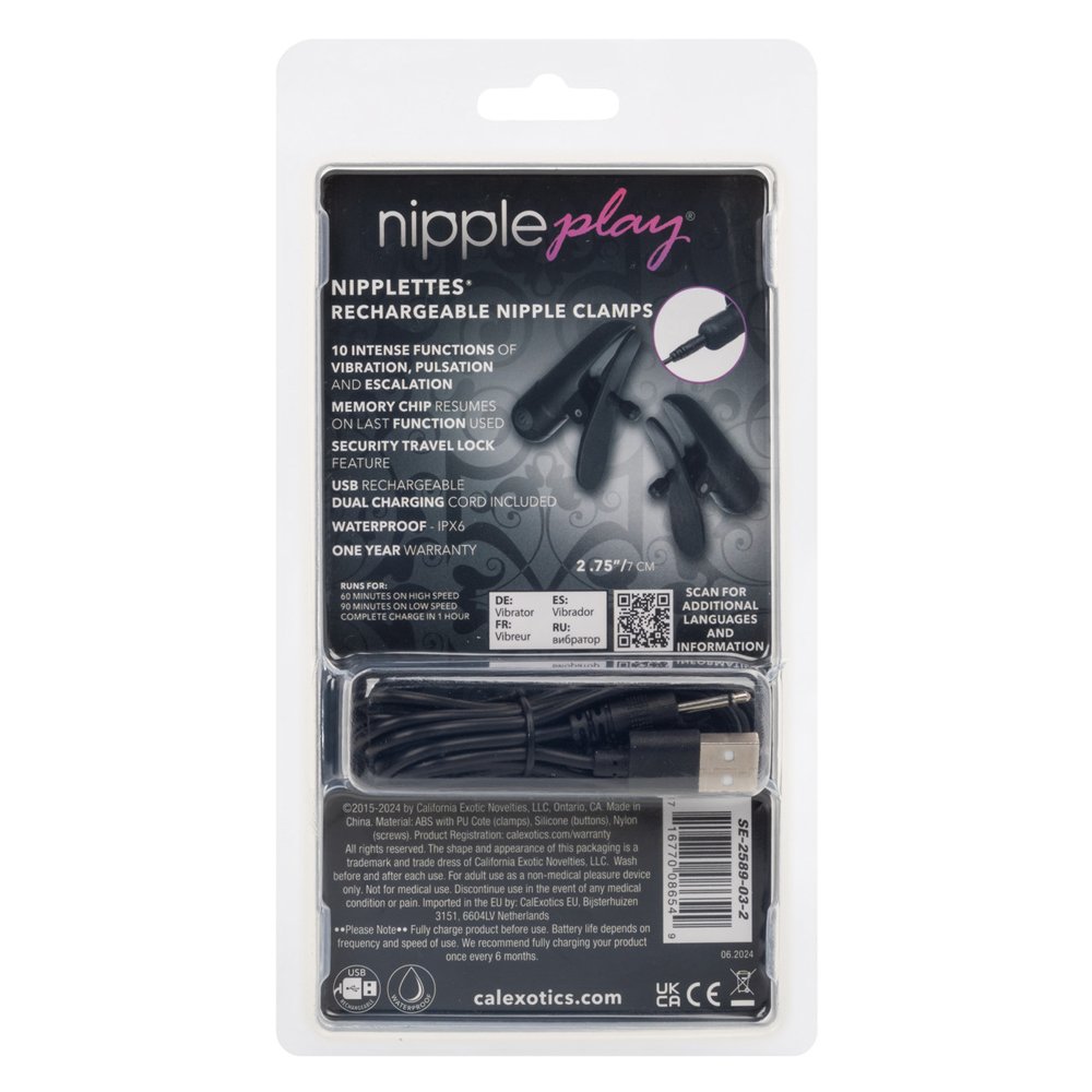 Nipple Play Nipplettes Vibrating Nipple Clamps Black Rechargeable