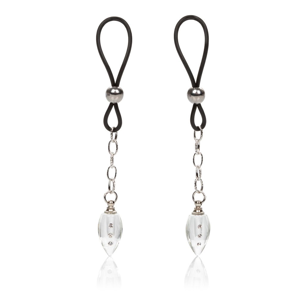 Play Non-Piercing Nipple Jewelry Crystal Teardrops. Explore elevated sensation with the 2 fully adjustable nipple jewel adornments, pliable cinch and sparkling crystals. One glance at the sparkling crystal jewels will inspire frisky fantasies and make you lover’s appetite water. Inspire feelings of sensuality, confidence and arousal when you tighten the slip cinch.
