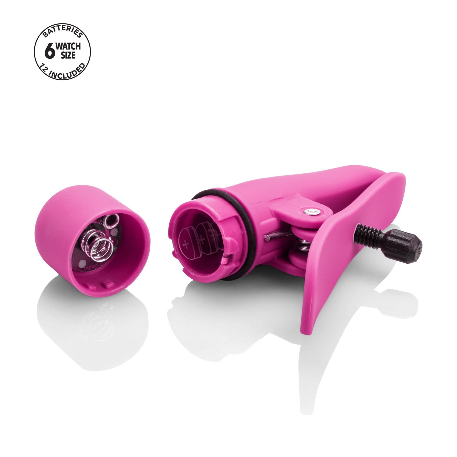 Nipplettes are supplied as apair and boast easy push-button activation for instant orgasmic delight. To use, squeeze the clamps open and attach directly to the nipple. Once activated, the super sensitive nipples are aroused and stimulated with tantalizing good vibrations. Extend your pleasure further by applying Arousal Gel (SE2244002) to the nipple area before attaching the exotic vibrating clamps. The discreet clamps measure a compact 2.75″ (7cm) and are the perfect introduction toy for mild BDSM and secret fantasy play. The adjustable clamps can be tightened for increased sensitivity and heightened climax satisfaction. Use the waterproof clamps for intimate exploration fun in the shower, bath, or hot tub. The mini clamps can also be attached to other erogenous zones all over the body.