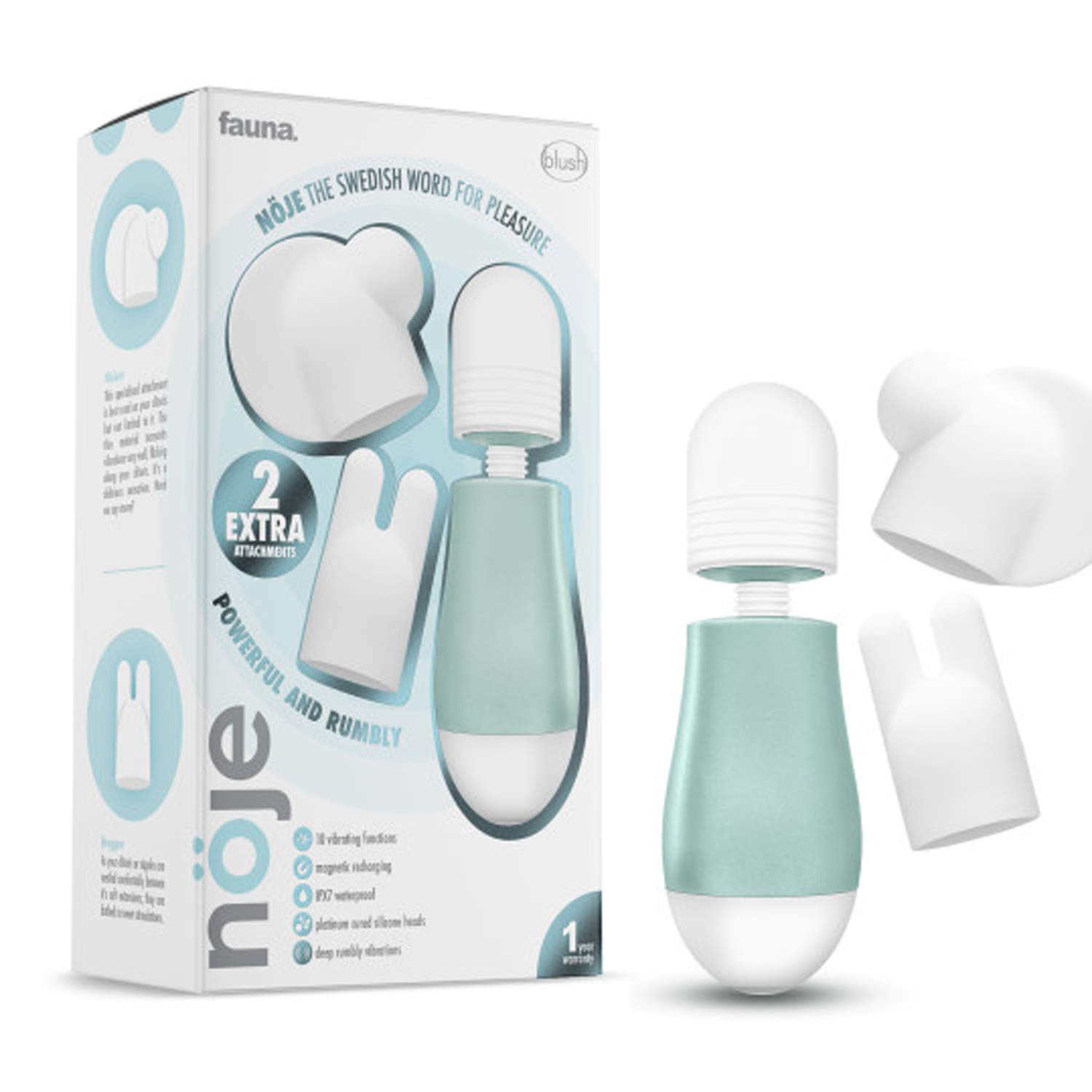 Youll enjoy all the power of a full size pleasure wand, packed into this petite 4.75″ package. The rechargeable Fauna features 10 deep, rumbly vibrating functions consisting of 5 speeds and 5 unique rhythms. Its made of safe ABS plastic, with a 100% silicone sleeve. Waterproof, suitable for bath and shower play, and easy to clean. The magnetic, USB charge cable clicks on, and the light indicator tells you when your toy is fully charged and ready to play! Fauna also comes with different attachment heads for exploring new sensations! Nje is the Swedish word for pleasure and the Nje Fauna lives up to its name.