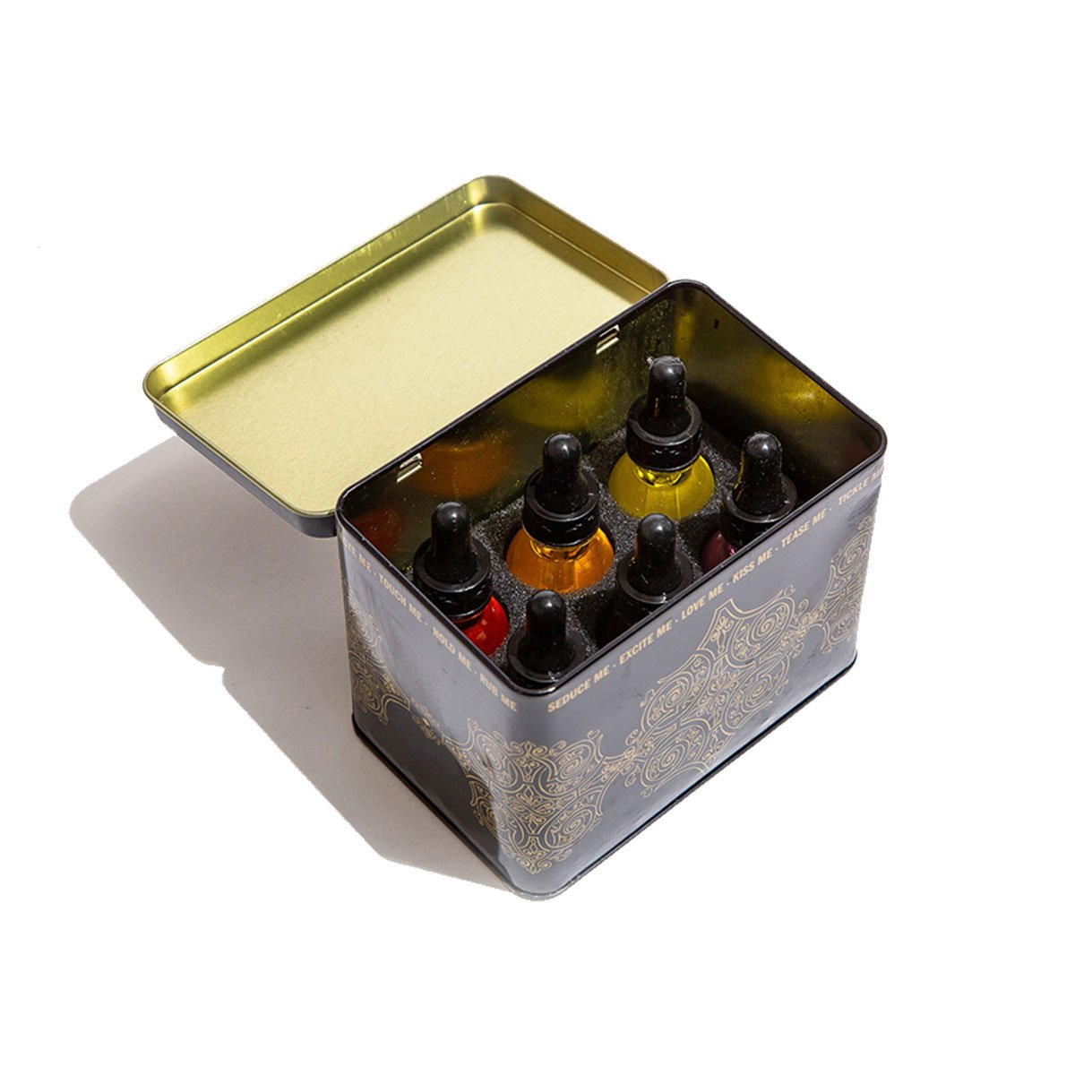 Try all six flavors of Oil of Love in one limited-edition value set! Kissable, water-based and warming oils that are perfect for foreplay. Combine flavors to create delicious new combos with the help of the recipe booklet included!