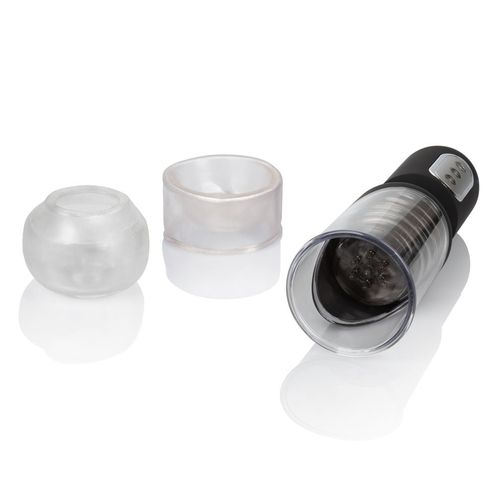 Dive deep into intense suction while the soft, vibrating internal landing pad uses the teasing ticklers to thrill your pleasure tool with full coverage stimulation. Enjoy powerful suction and a superior seal with two unique interchangeable donuts. Use the simple donut for your regular pumping session and the other ultra-tight donut for knee-shaking stimulation. This removable open-ended chamber sleeve is easy-to-use, easy-to-clean and requires no special care.