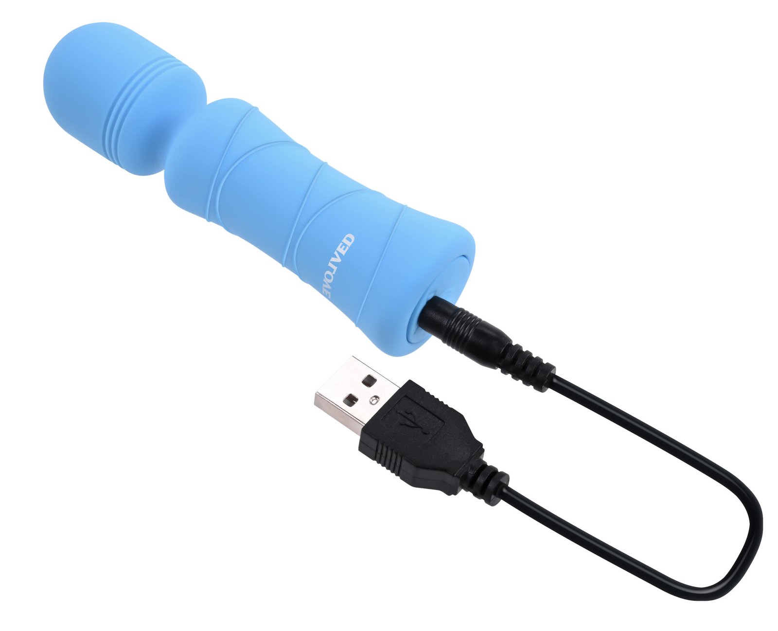 The skys the limit for your pleasure! Experience exhilarating 7-speed power right out of the blue with this petite wand vibe that sends you soaring! Its fully water submersible with a smooth and creamy silicone covering that seals up its flexible head and neck to be watertight. The easy-grip handle lets you relax so you can focus on reaching intense heights of pure bliss! Rechargeable, easy to clean, discreet size.