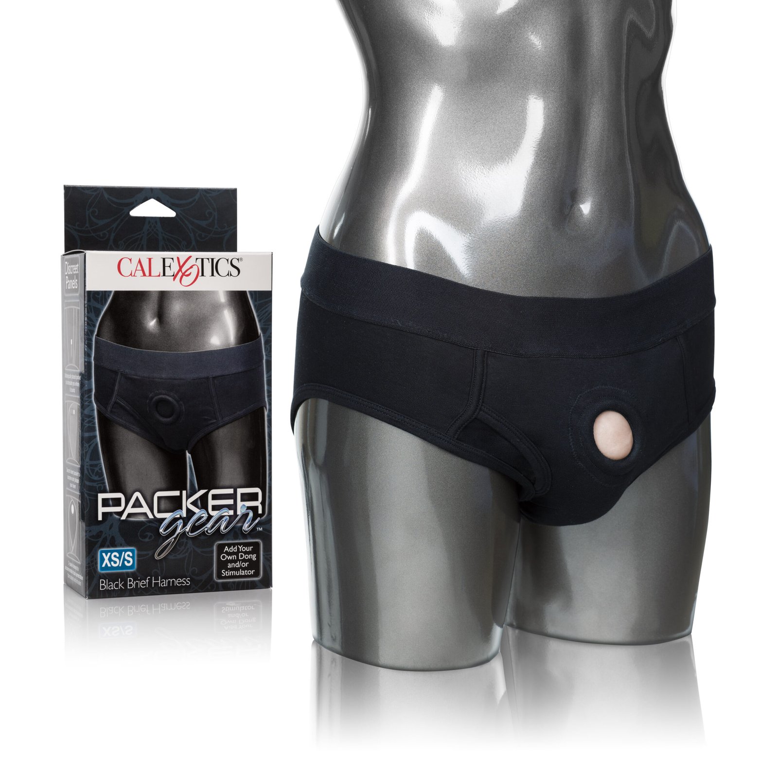 Discreet 2-panel design to accommodate dual penetration. or probes. Soft stretchy and comfortable. Comfortable soft lining. Internal strap to secure your packer in place. Internal pockets to add a favorite stimulator.