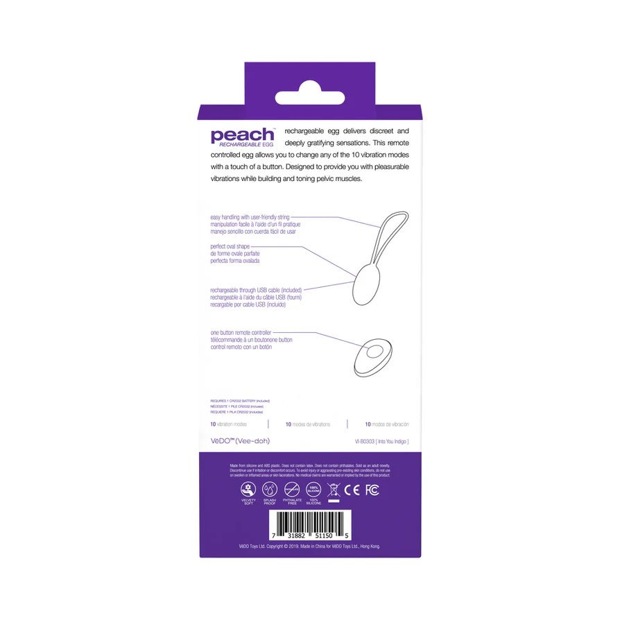 PEACH rechargeable egg delivers discreet and deeply gratifying sensations. This with a touch of a button. Designed to provide you with pleasurable vibrations while building and toning pelvic muscles.