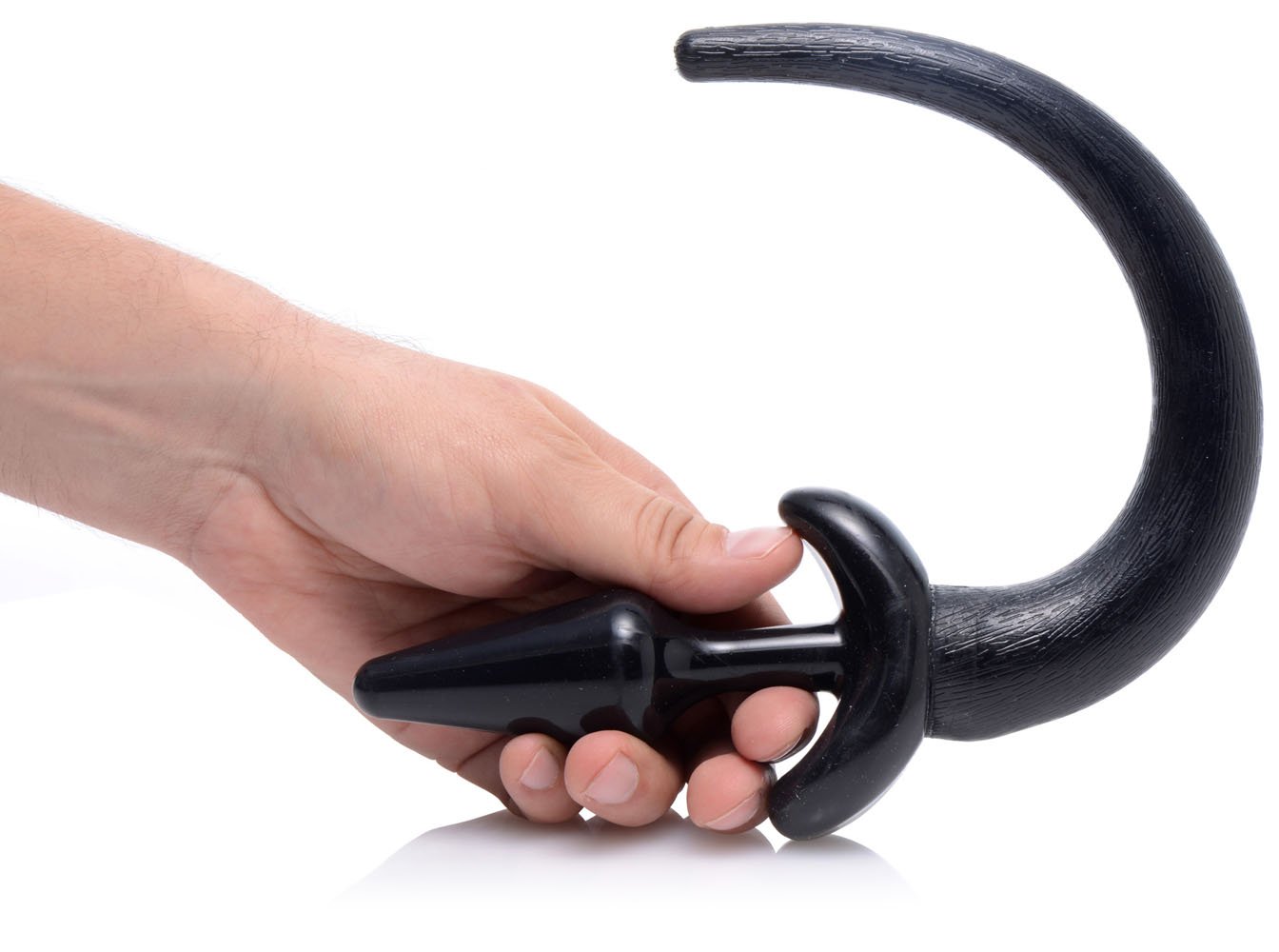 Plug up your pup with this slim, smooth anal toy! This tail will instantly transform your partner into your pet when you slide it in their tight hole! The tapered tip and sleek material make for an easy and comfortable insertion. The flexibility ensures that the narrow plug will bend with the internal contours of your body. Firm, but springy, the tail will wag as your happy pup shakes their hips and crawls around at your feet! Compatible with silicone or water-based lubes. Clean with mild soap and warm water.