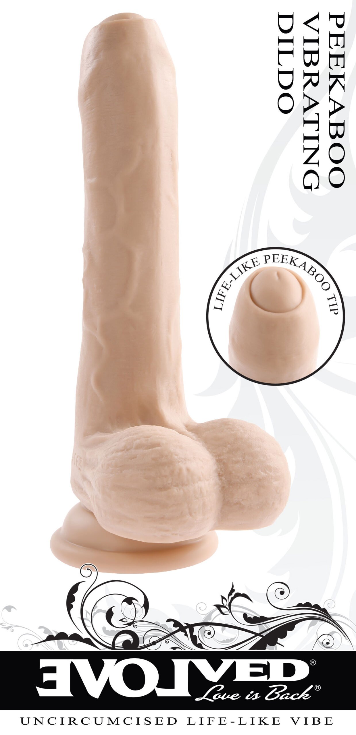 Peek-a-boo! This realistic vibrating dildo is made from dual-layer liquid silicone for a true uncircumcised experience that lets you peek-a-boo the shaft tip back and forth. A powerful motor in the head delivers 10 vibrating speeds and patterns while an additional on-demand turbo button sends 10-second bursts of extra intensity whenever you want more! Flexible to move with your body, rechargeable and fully water submersible.