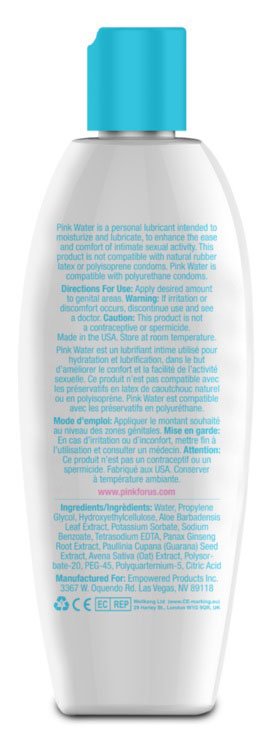 Pink is a personal lubricant intended to moisturize and lubricate, to enhance the ease and comfort for intimate sexual activity. This product is not compatible with natural rubber latex or polyurethane condoms. Pink is compatible with polyisoprene.