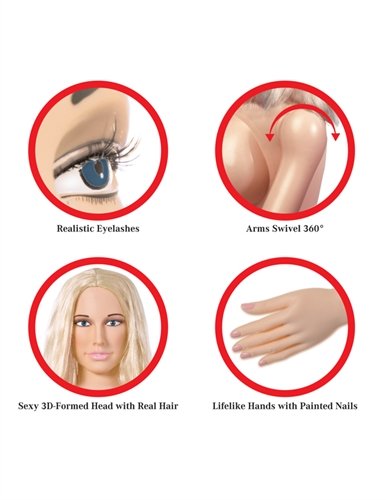 Wanna see whats hiding under this pretty pink bikini… This incredible life size inflatable love doll was meticulously designed with realistic features for a truly lifelike experience. Her sexy 3-D formed head features realistic eyelashes and a luxurious head of real hair thats begging to be pulled. Watch her really come to life with arms that swivel 360 degrees and delightfully painted finger and toenails. Give her firm and perky breasts a squeeze while you enjoy her ultra-lifelike Fanta-Flesh skin pussy and ass that feels even better than the real thing The Fanta-Flesh pussy and ass are removable for easy in-depth cleaning, and can even be enjoyed separately for masturbation. An inflation pump vinyl repair kit and instructions are conveniently included.