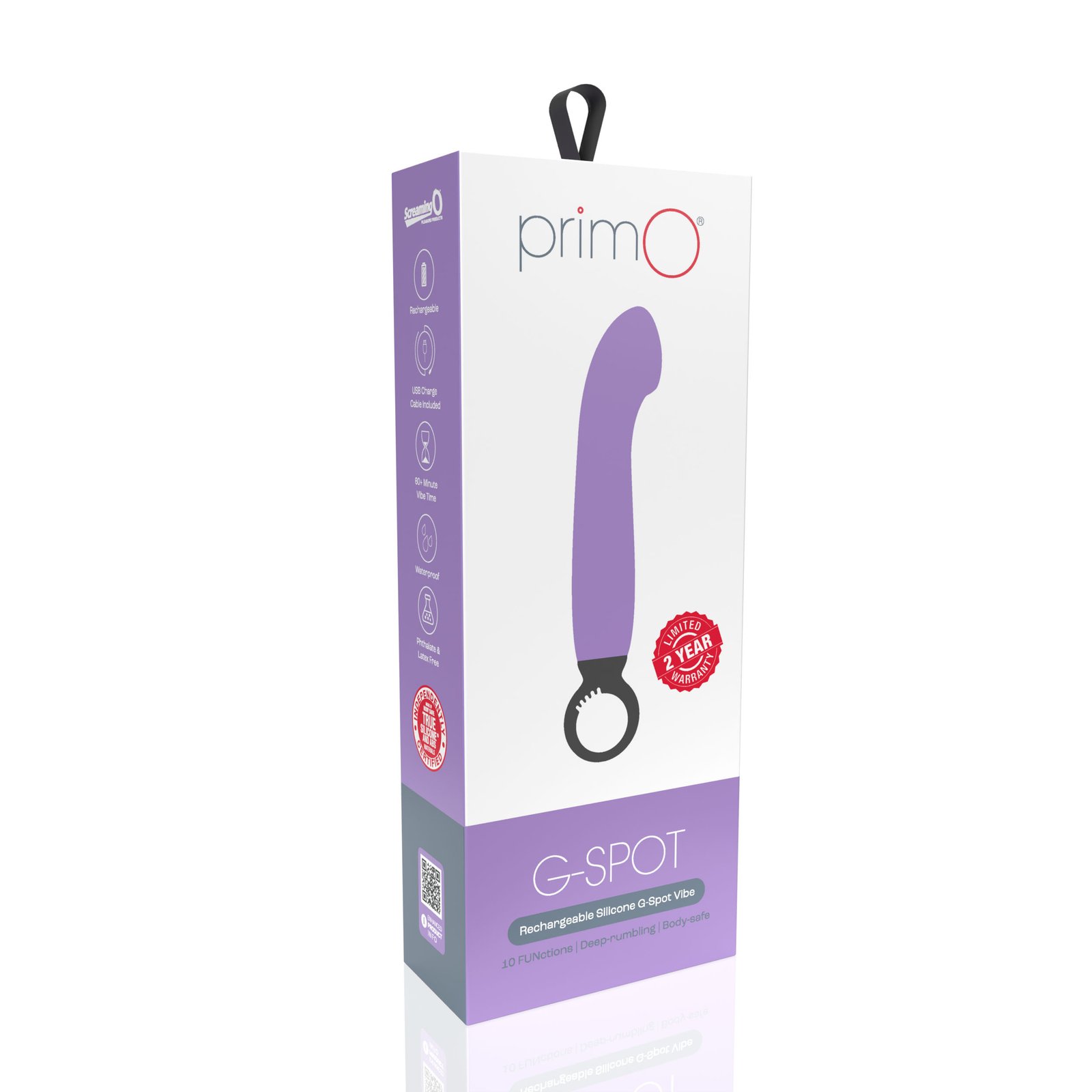 Dont let the simplicity of the shape fool you the Screaming O PrimO G-Spot vibe will be your new go-to! A contemporary update on a classic, the PrimO G-Spot delivers 5+5 powerful, rumbling vibrations: 5 steady speeds and 5 patterns of pulsation. The broad-headed design covers a larger surface area for anatomically correct stimulation, which can be enjoyed both internally and externally. The PrimO G-Spot runs for 60 minutes on a single charge, comes with a USB charging cable, and is crafted from silky-smooth True Silicone and ABS plastic that is 100% body-safe.
