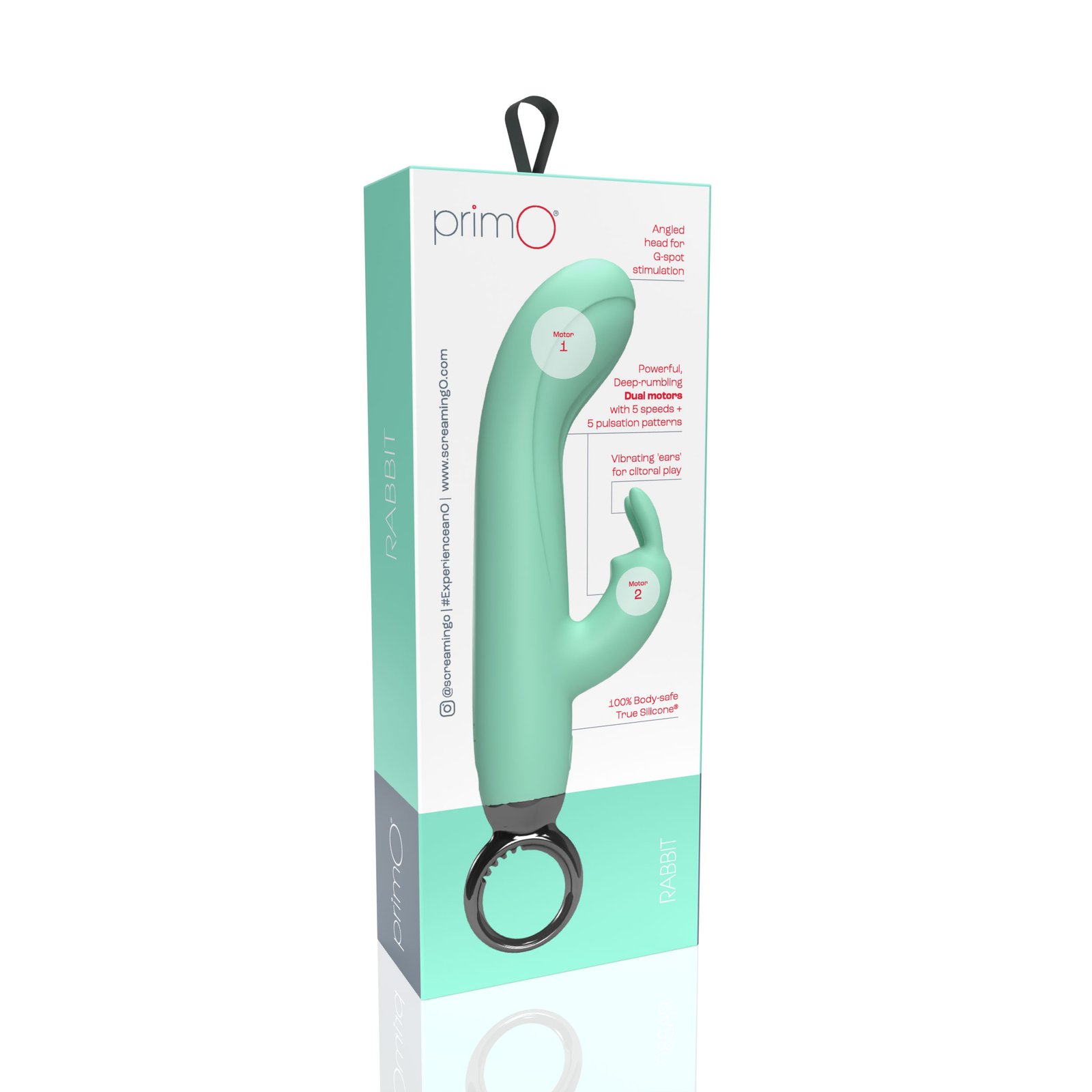 Crafted from buttery-soft True Silicone, the Screaming O PrimO Rabbit has an insertable length of 4.5 (11.43 cm) and a generous 4.25 (10.79 cm) girth, which fits most bodies comfortably. The 5+5 motor delivers 5 steady vibration speeds and 5 pulsation patterns at the touch of a button, and the iconic O’ crafted from ABS allows users to easily grip and position the vibe just where it feels best. The PrimO Rabbit runs for 60 minutes on a single charge and comes with a USB charging cable.