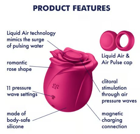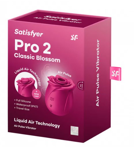 The Satisfyer Pro 2 Classic Blossom is an air pulse vibrator that will enchant you with more than its inner values. The design is absolutely extraordinary a unique gift for that special someone or even for yourself. Beginners, but also experienced toy lovers will be equally happy with the pressure wave vibrator. Made entirely of body-friendly silicone, this rose will never wilt. It doesn’t need to be watered either but thanks to its waterproof (IPX7) finish, it’s very likely to join you into the bathtub or shower. Like this, you can indulge your senses wherever you enjoy it most. Clean the vibrator with a little toy cleaner or soap and water and use the included USB cable to recharge this easy to care for little plant. With the Satisfyer Pro 2 Classic Blossom, you can let your desire blossom get your personal sensual spring fever whenever you feel like it!