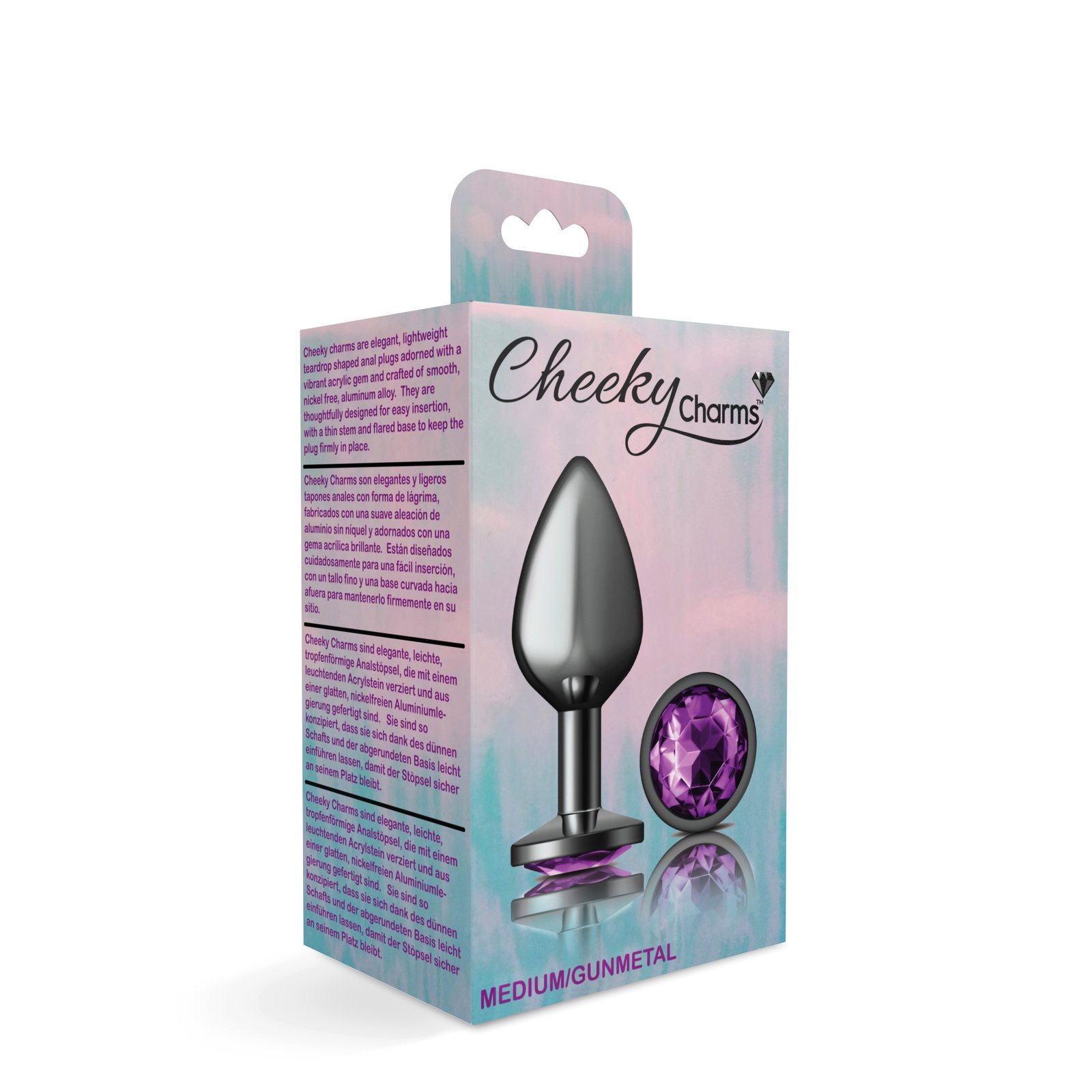 Cheeky Charms is a collection of vibrant, seductive metal anal plugs, each showcasing a beautiful acrylic gemstone. These butt plugs are great for temperature play and anyone who wants to decorate their rear entrance. Tapered for easy insertion and designed with a flared base and thin stem. Cheeky Charms anal plugs are comfortable to wear for an extended period of time. Wearable during intercourse to achieve a fuller feeling. Available in various unique colors and sizes. Cheeky Charms are the perfect booty jewelry for women, men, couples and also for solo play.
