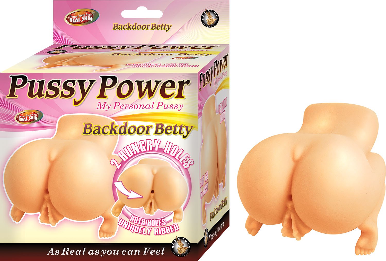 Pussy Power Backdoory Betty has 2 hungry holes! Both holes are uniquely ribbed & have noduled suction tunnels. Better than real “Real Skin” is made of TPR. Big round booty and soft ass and pussy feels so real and is super stretchy.