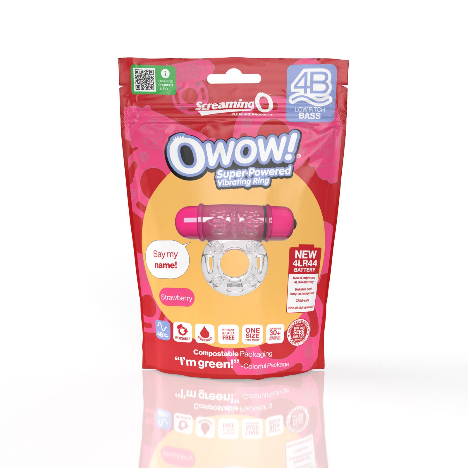 Screaming O 4b – Owow Super Powered Vibrating Ring – Strawberry