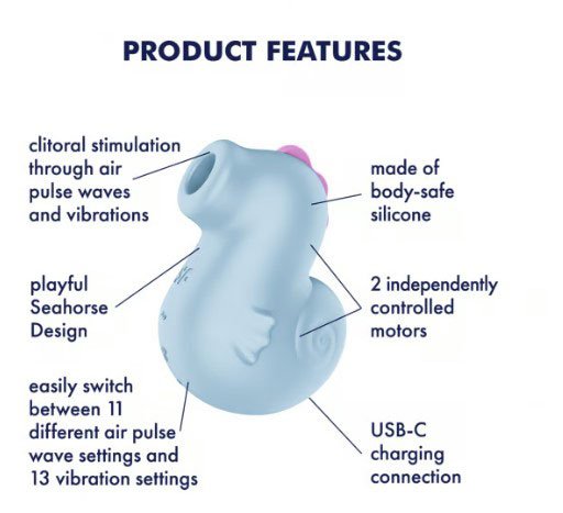 Sweet, sweeter, the Satisfyer Sea Pony! This air pulse vibrator isn’t just a visual delightit takes you on a deep dive into a world of sensual orgasms. Dual stimulation of the clitoris through air pulse waves and vibrations.