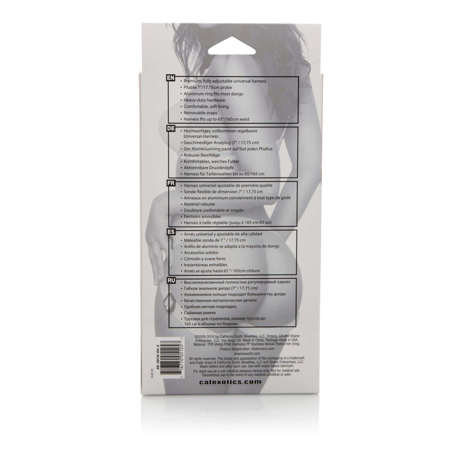 Plushy soft, padded, double-stitched, 4-snap universal harness Non-chafing, fully adjustable waist and thigh straps and a hidden pocket for an optional stimulator Includes a superior quality dong