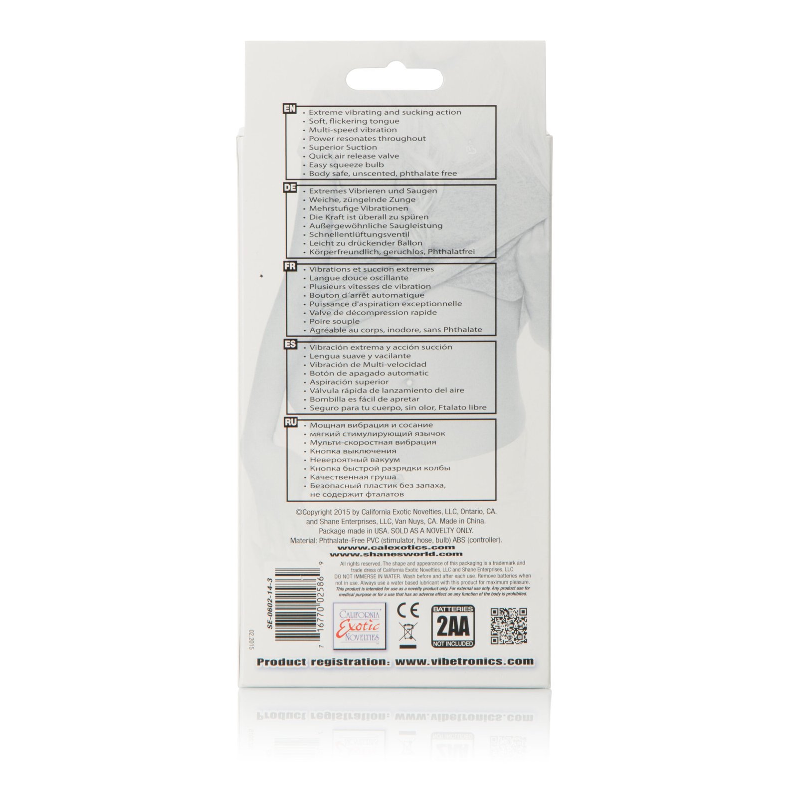 Soft sensuous sucking lips with teasing vibrating tongue. Sturdy suction base and easy squeeze hand pump.