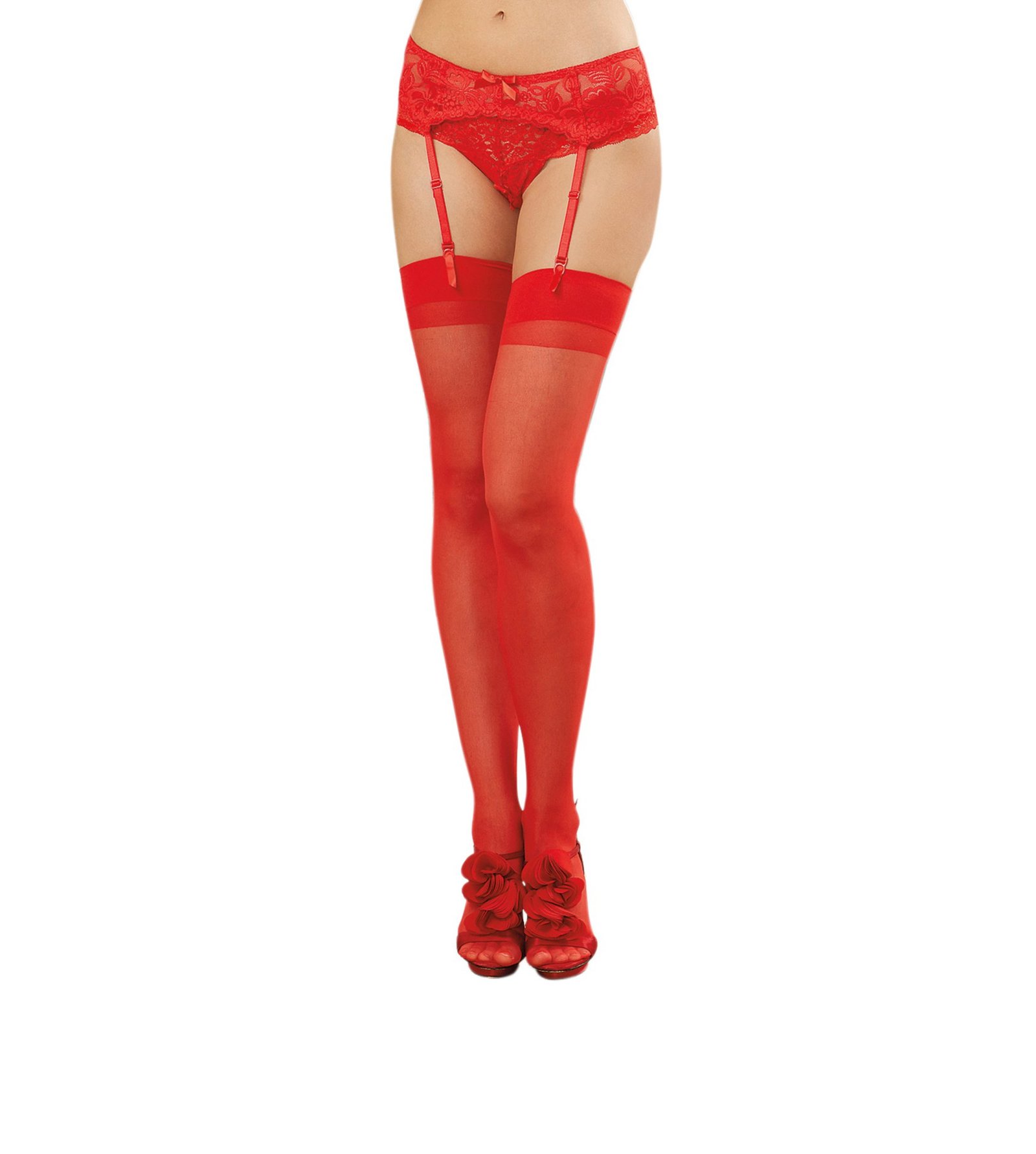 Sheer Thigh High – One Size – Red