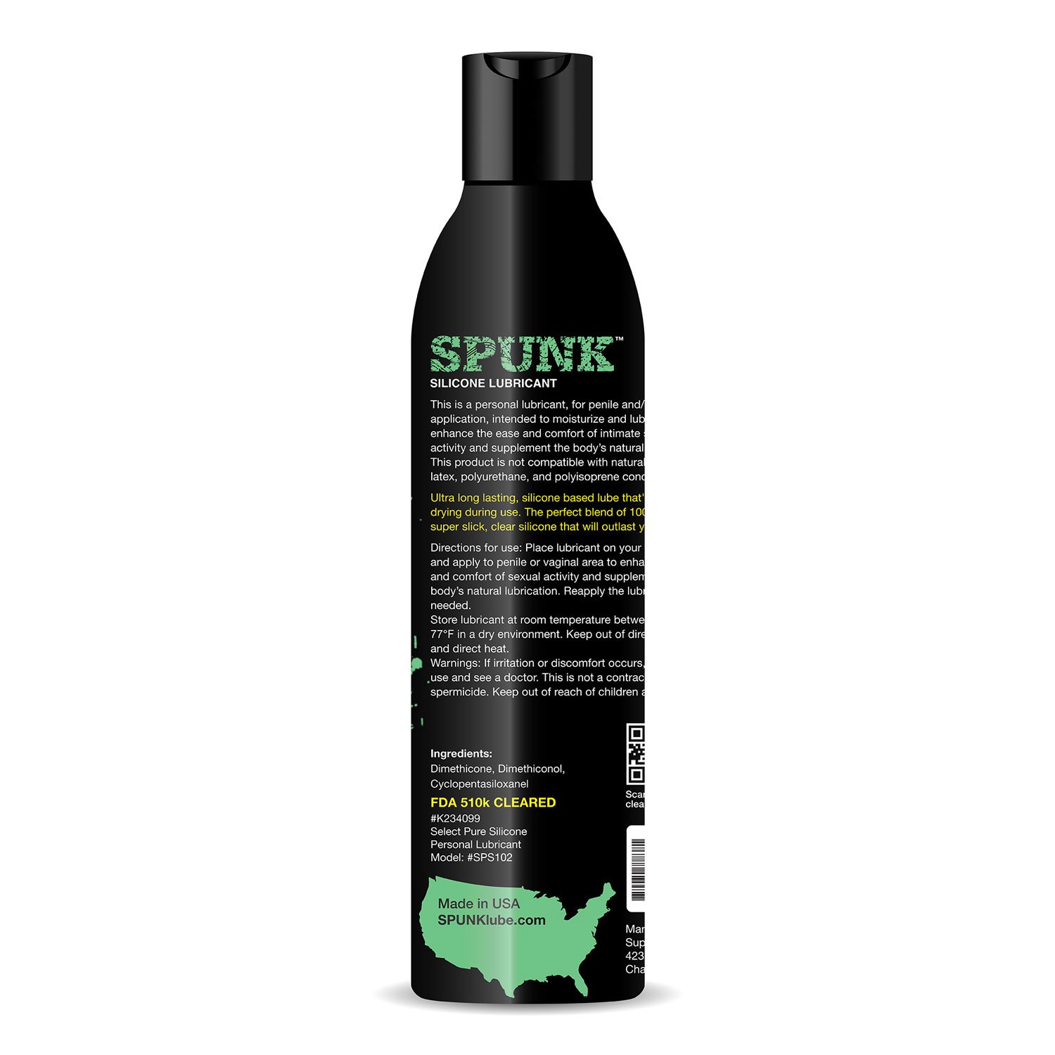 SPUNK Lube Pure Silicone is non drying during use. It’s a special blend sex toy safe, non staining & softens your skin. It’s silicone based parabens, propylene glycol & other ingredients. SPUNK Lube Pure Silicone is of 100% pure clear silicone that will out last you. It’s free from glycerin, it doesn’t contain any additives or preservatives. but cleans up much easier than traditional silicone based lube because