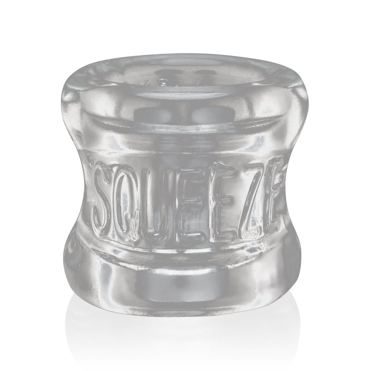 SQUEEZE is a thick, blubbery ballstretcher designed to meld to your junk like a second skin. Each end of SQUEEZE is topped with squishy padding to push your cum-heavy nuts down and away from your body for a sweet stretch thats sure to make you shoot. The curved design of the inner chamber grips your meat tight without stranglin the life outta your boysthink of it like a hand gently tuggin on your ballbag.