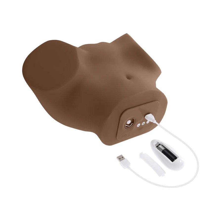 This soft yet firm body stroker is designed to create the ultimate squirting experience! Release an unforgettable shower at the touch of a button that squirts from the life-like vaginal opening. Powerful vibrations and a thrilling sucking function enhance the ride as you glide through the beaded textures, getting inspiration from the complimentary erotic movie.