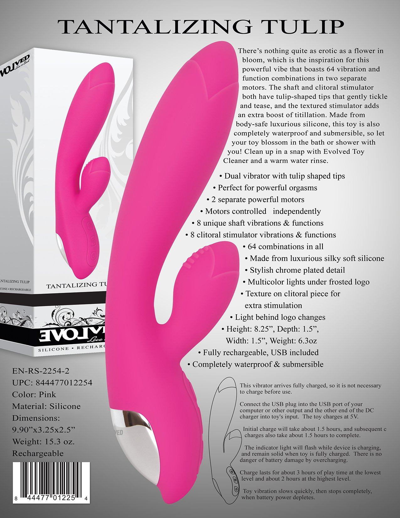 The Tantalizing Tulip is inspired by a flower in bloom. The shaft and clitoral stimulators both have tulip-shaped tips that gently tickle and tease, and the textured stimulator adds an extra boost of titillation.