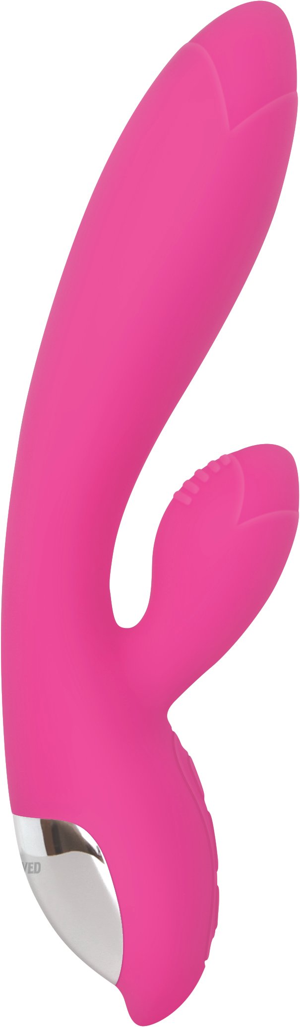 This vibe is waterproof and fully submersible. It features 2 motors to control the shaft and clitoral stimulator separately, with 8 unique vibrations and functions.