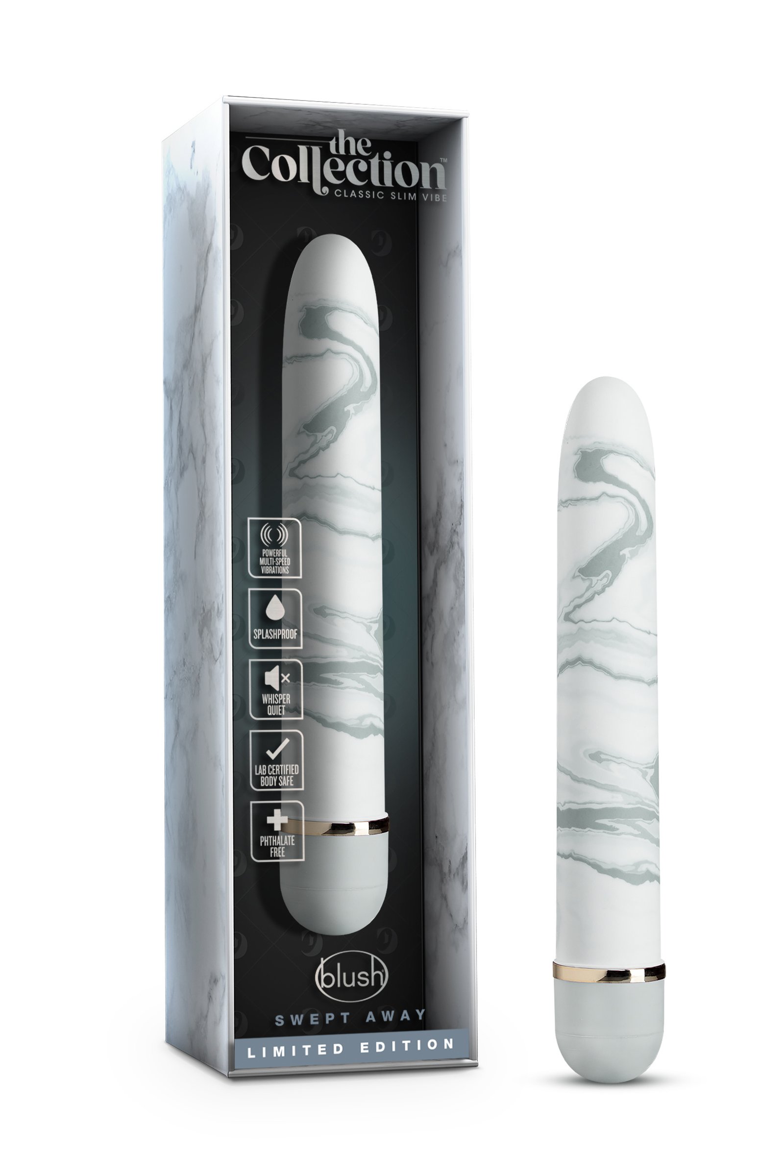 Who knew pleasure could be this fantastic? The Collection “Swept Away” is a perfect gift for yourself or your lover. Quiet and discreet, Swept Away delivers strong multi-speed vibrations, controlled by an easy twist dial. Made of smooth ABS plastic, it’s body safe and splashproof for easy cleaning. Requires 2 AA batteries (not included). As with all products and/or materials at Blush it has been 3rd party lab tested to meet or exceed REACH and Prop65 safety compliance directives. It’s your body. Be mindful of what you put in it.