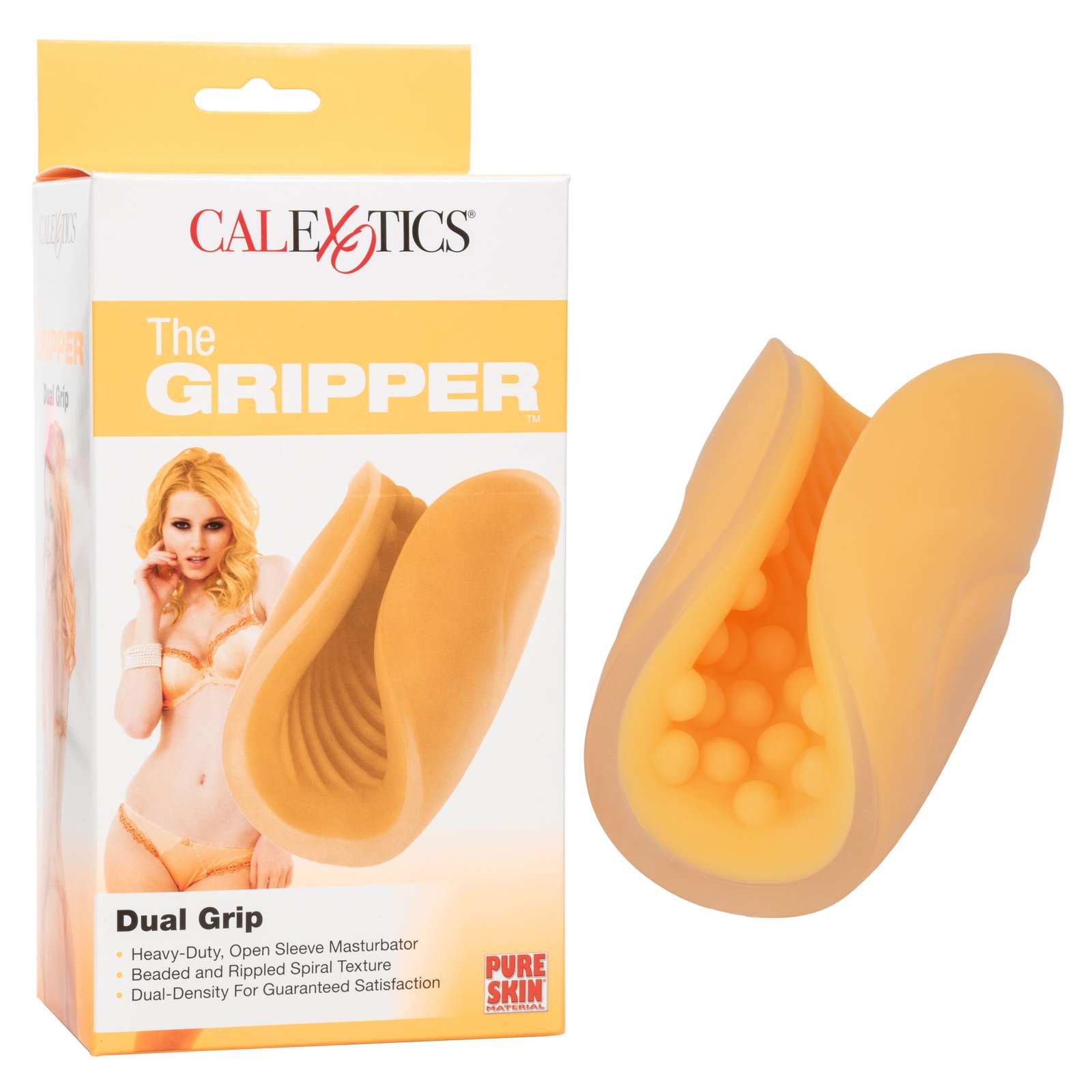 The Gripper Dual Grip is a heavy-duty, flexible, open-sleeve masturbator which gives the user a safe and effective way to improve intimate pleasure and help you achieve maximum orgasm. Featuring soft-ridges on one side and pleasure nodules on the other side, this design makes it easy for anyone to play – either solo, or for use by one person on another!