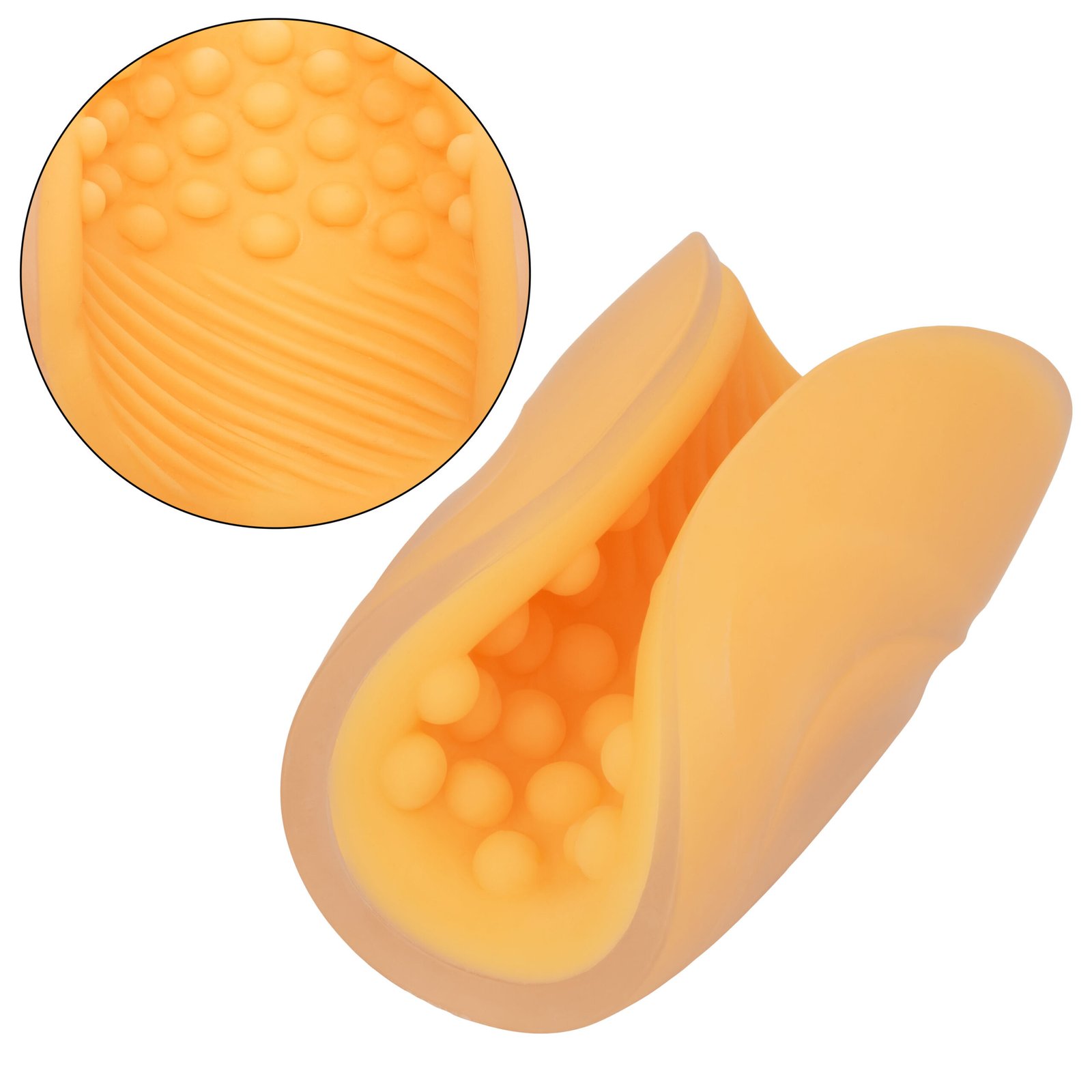 The dual-pattern design allows for a choice between the spiral pattern on one side, or the tactile beaded pattern on the other. Both options maximize the containment for the lubricant of your choice. The different textures will keep the lube just where you want it, and provide the perfect glide for even more pleasure.
