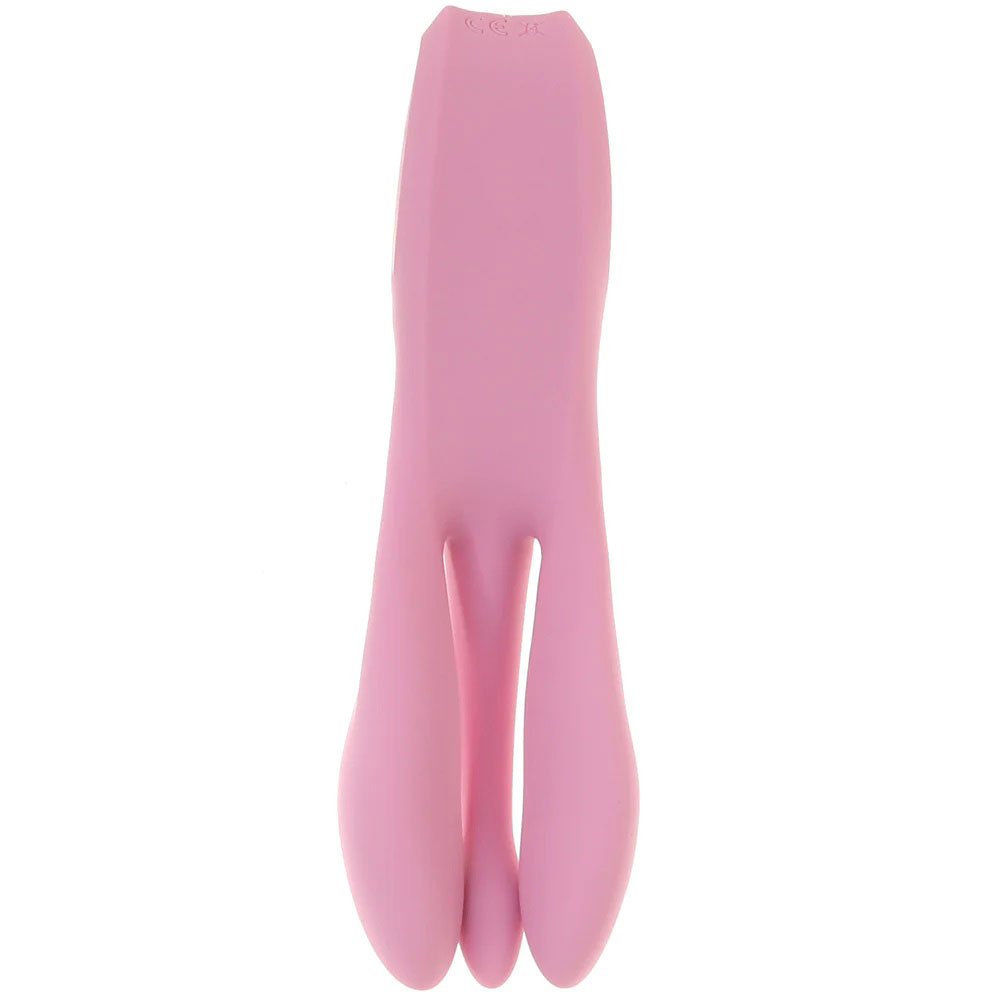 Super silky, extra curvy and very comfortable in your or their hand, the Threesome 1 Vibe will have no trouble at all seeking and finding your or your partner’s pleasure places. Speaking of pleasure places, that threesome of contoured petals (each featuring a dedicated motor) below might even unearth some sweet spots you didn’t even know existed! The two larger petals can act as spreaders, exposing your partner’s clitoris and beyond to twelve toe-curling patterns of vibration on either side and another twelve in the middle. Separate buttons control the two end petals and center stem.