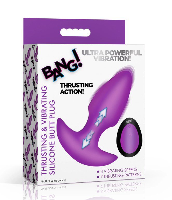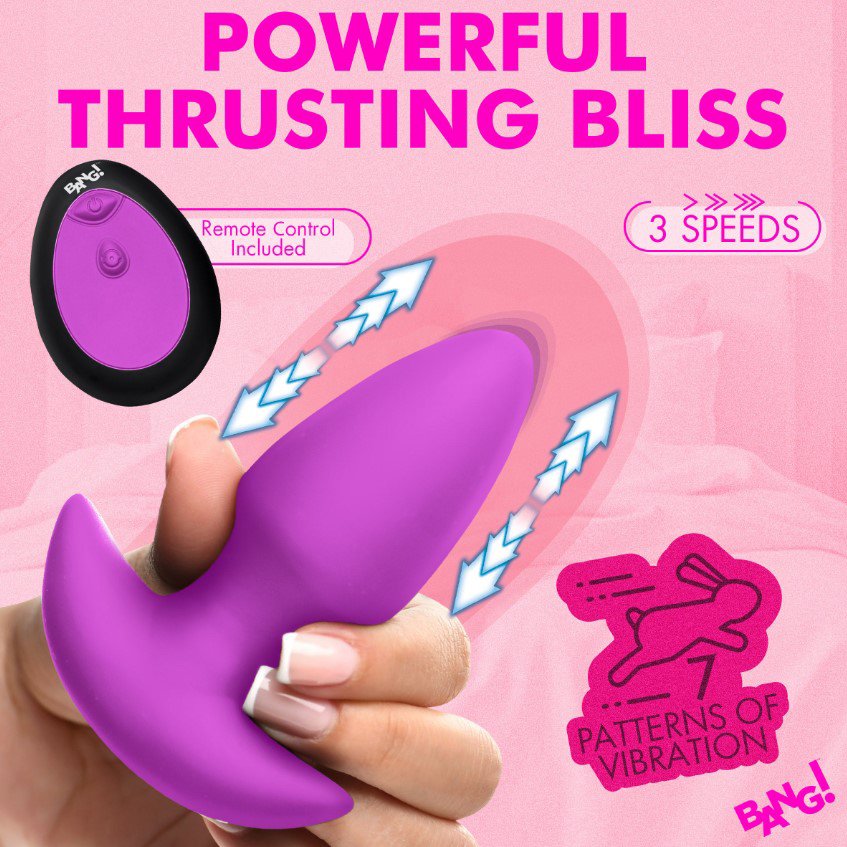 Thrusting and Vibrating Silicone Butt Plug – Purple