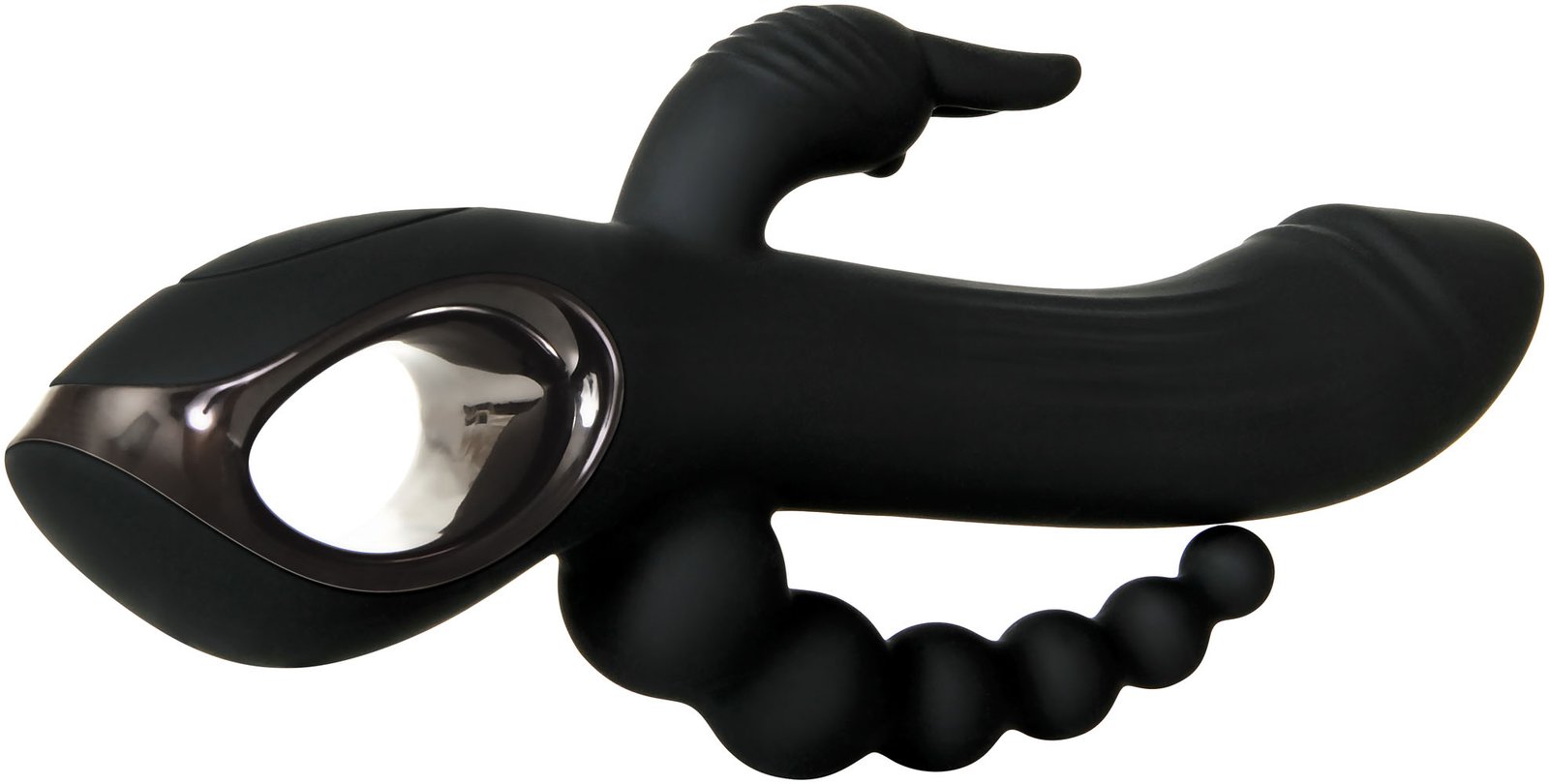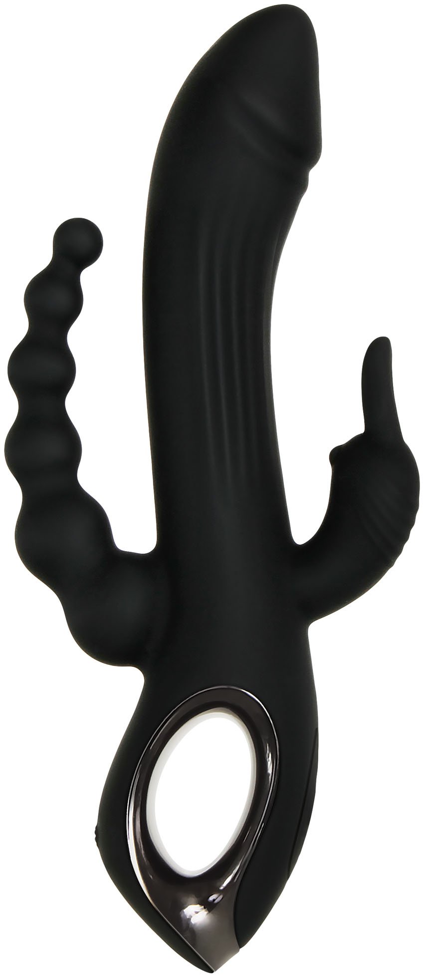 Discover the most intense and deeply fulfilling orgasm possible – the trigasm! Stimulate three erogenous zones at once to experience other-worldly pleasure that will leave your knees weak. The realistic phallic-shaped main shaft delivers powerful internal vibrations while the hard-working bunny ears. Meanwhile, the beaded anal shaft gently and gradually slips inside your back door to complete the tantalizing trifecta of pleasure! Find the right rhythm for your unique taste, enjoying three motors in all, and explore your trigasm in the bath or shower as it’s completely submersible.