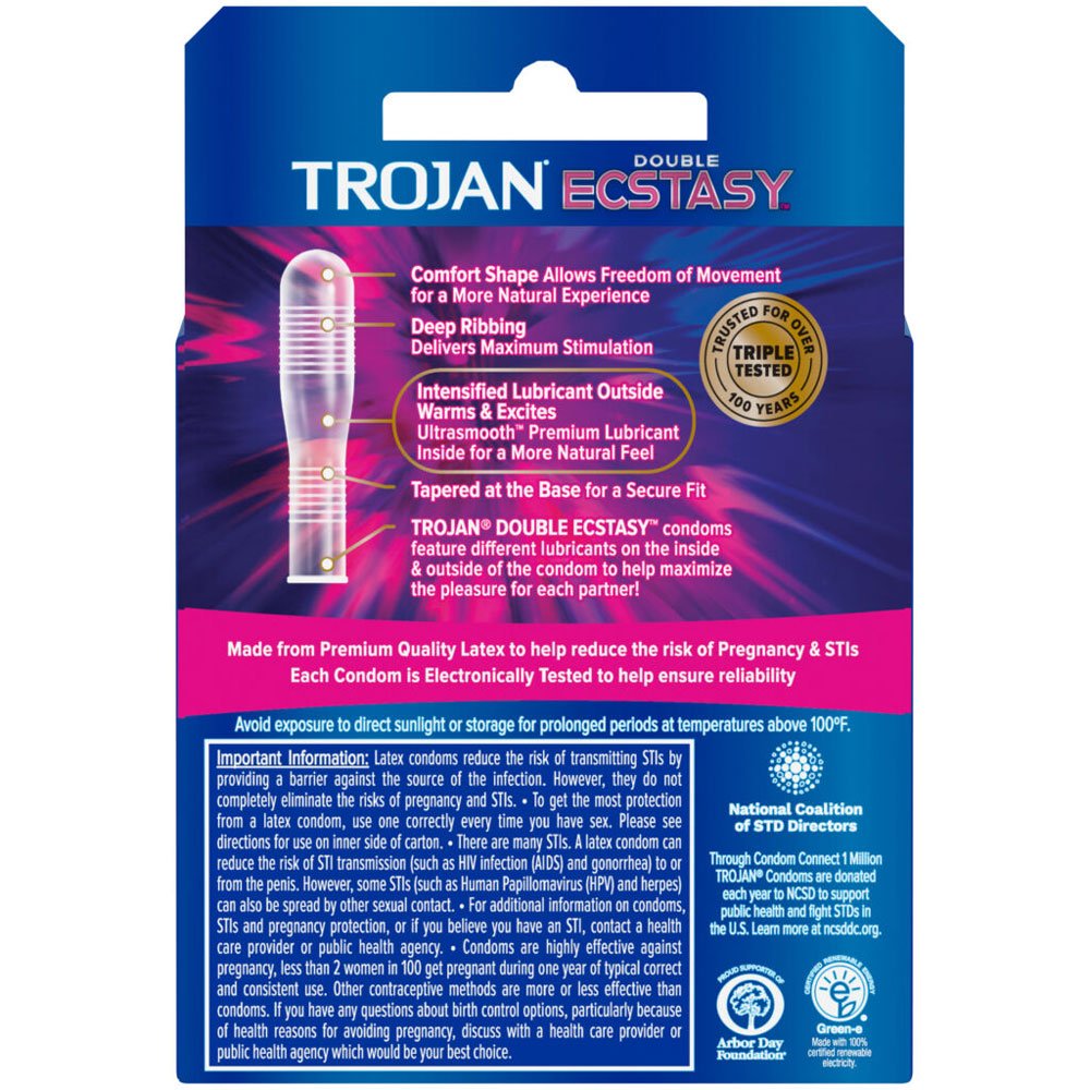 Trojan Double Ecstasy Condoms feature a revolutionary design that lets you feel the pleasure, not the condom! Different lubricants on the inside & outside of the condom help maximize the pleasure for each partner!