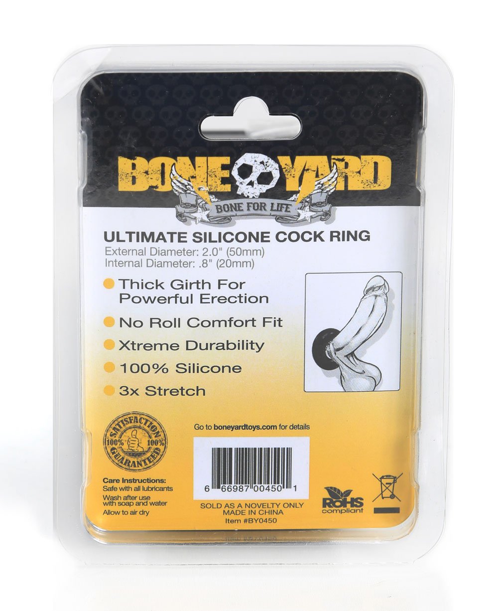The Boneyard Ultimate Silicone Cock Ring is the must-have man toy for every mans arsenal. The premium donut shaped ring is designed with superior materials and production thus increasing both comfort and lifespan. The powerful and iconic Boneyard-branded design has a sleek soft touch silicone finish and features a superior and durable stretch.