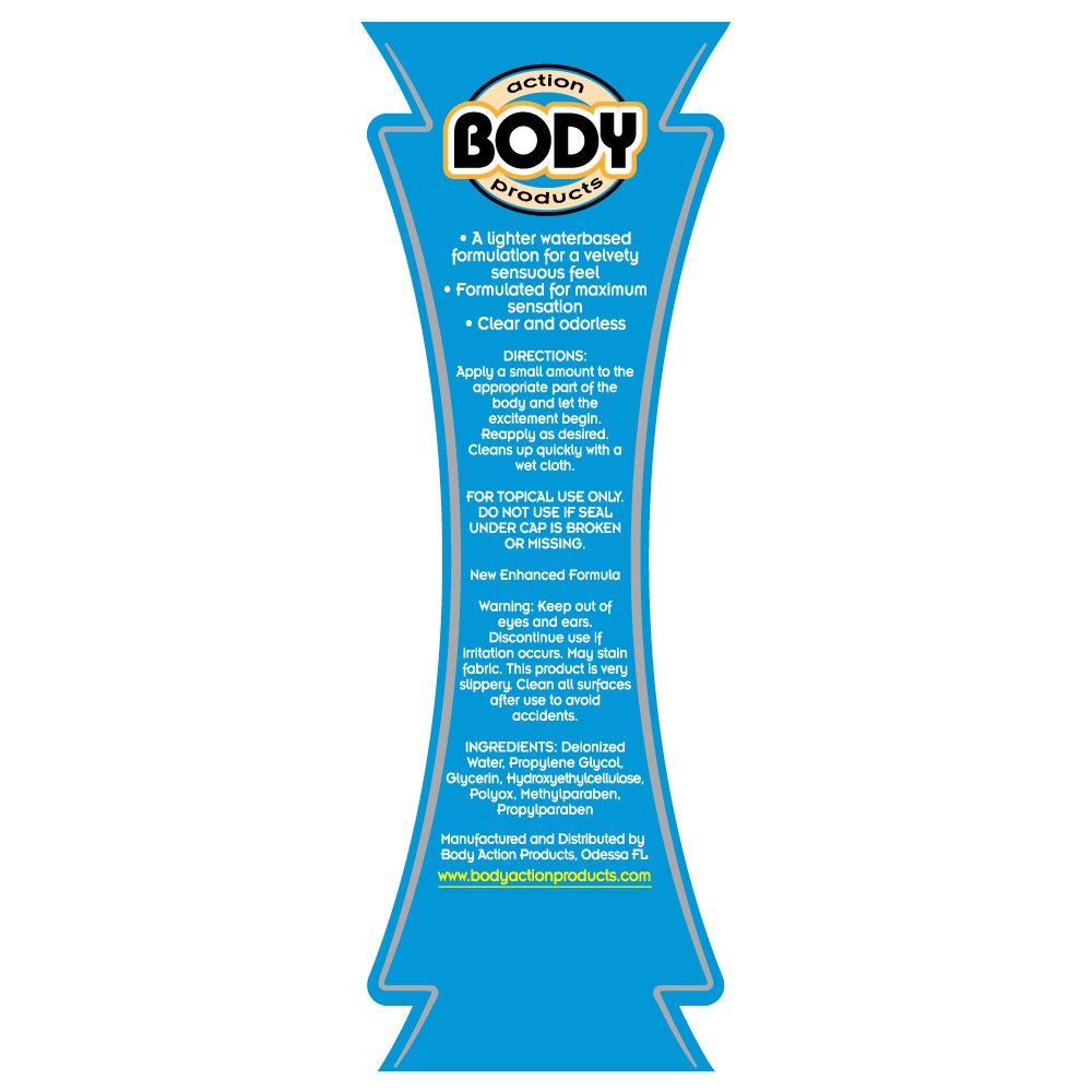 Waterbased Ultra Light for a slick velvety sensuous feel. This formula is designed for the individual who wants a slight amount of lubrication yet retain maximum feeling. Latex compatible