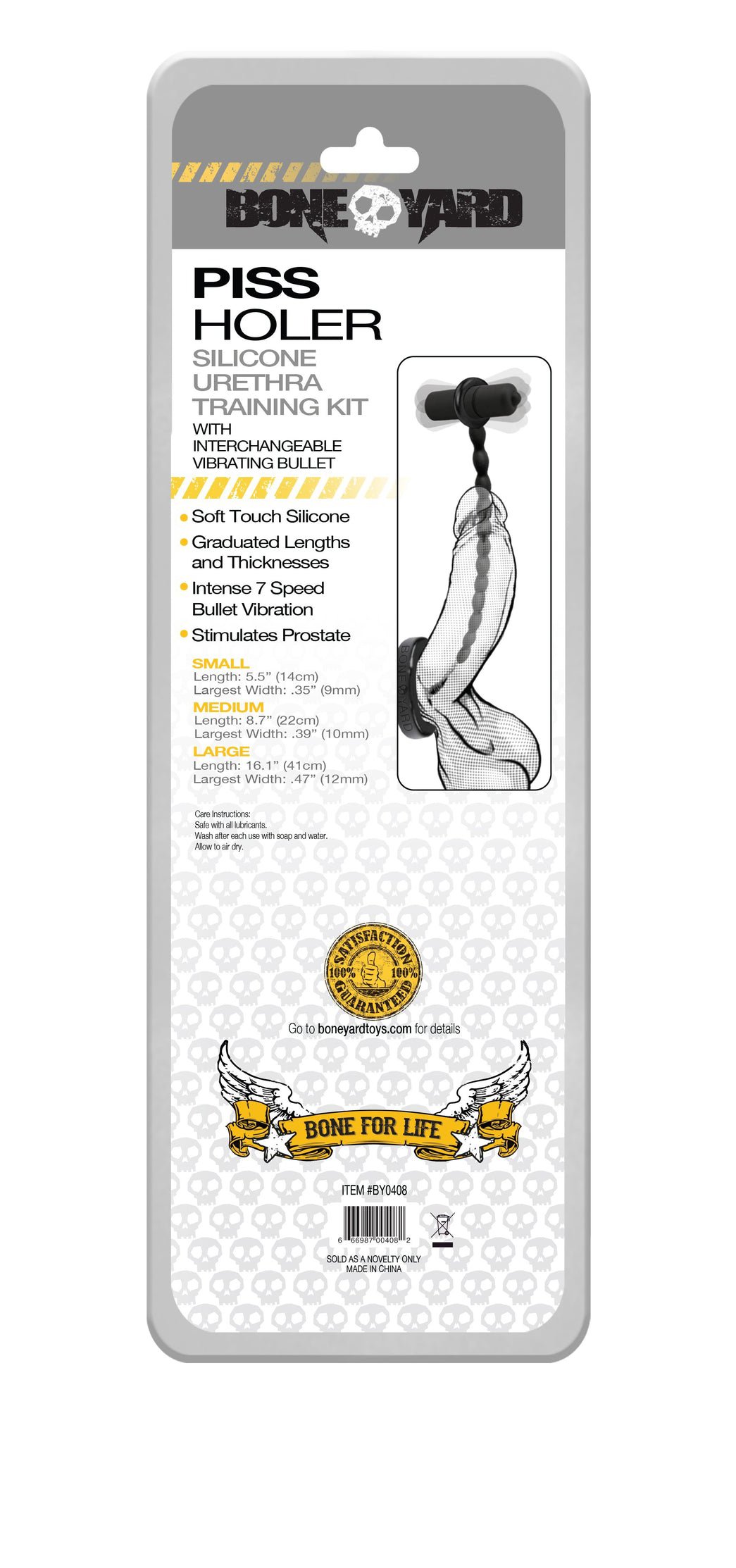 The kit also includes an interchangeable 7-speed vibrating bullet, with 7 different strengths and patterns that travel down the entire length of each sound. When inserted through the circular opening on the top of each sound, the bullet also acts as a handle to easily guide each sound while inserting for that unique prostate sensation that you crave.