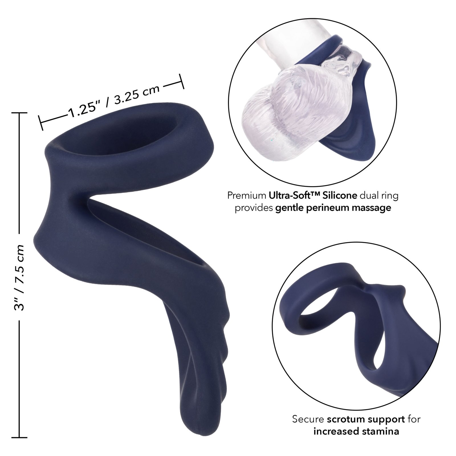 The premium Ultra-Soft silicone is body safe, unscented and phthalate free to keep your most sensitive spots happy and healthy. The premium dual cock ring has a ring diameter of 1.25 (3.25 cm) and an overall size of 3 x 1.75 (7.5cm x 4.5cm)