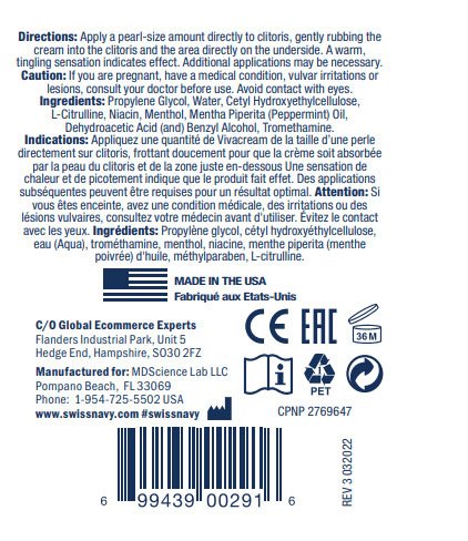 Directions: Apply a pearl-sized amount directly to clitoris, gently rubbing the cream into the clitoris and the area directly on the underside. A warm, tingling sensation indicates effect. Additional applications may be necessary.