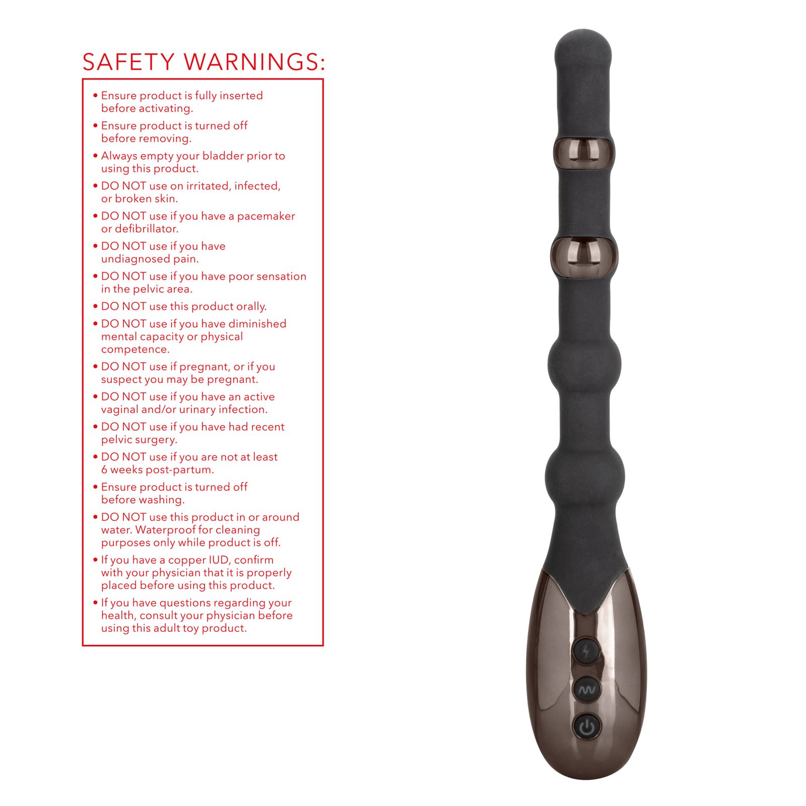 Waterproof (Do not use in water while E-stim is activated)