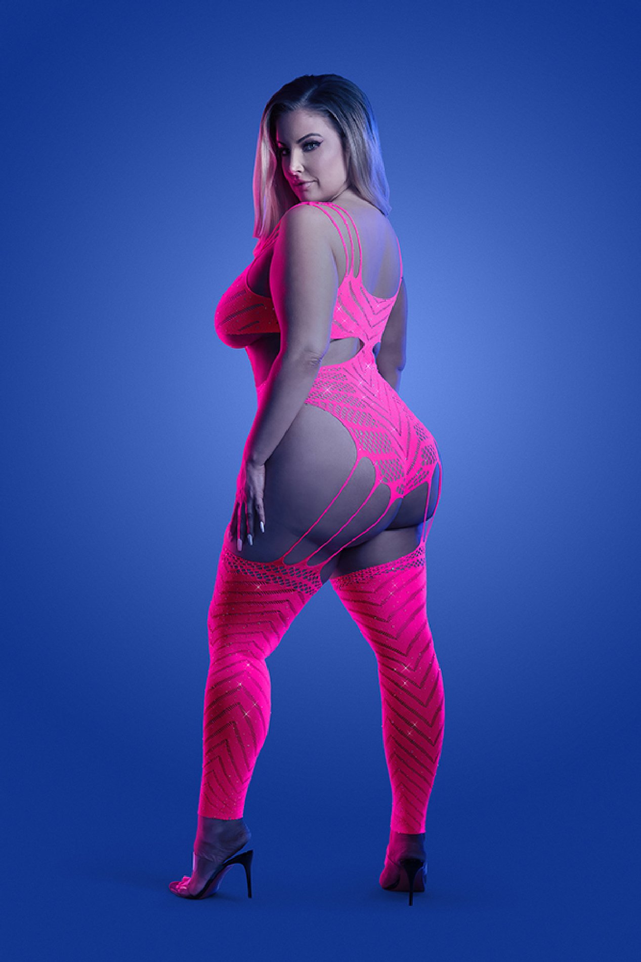 Rhinestone Embellished UV Reactive Cutout Teddy Bodystocking