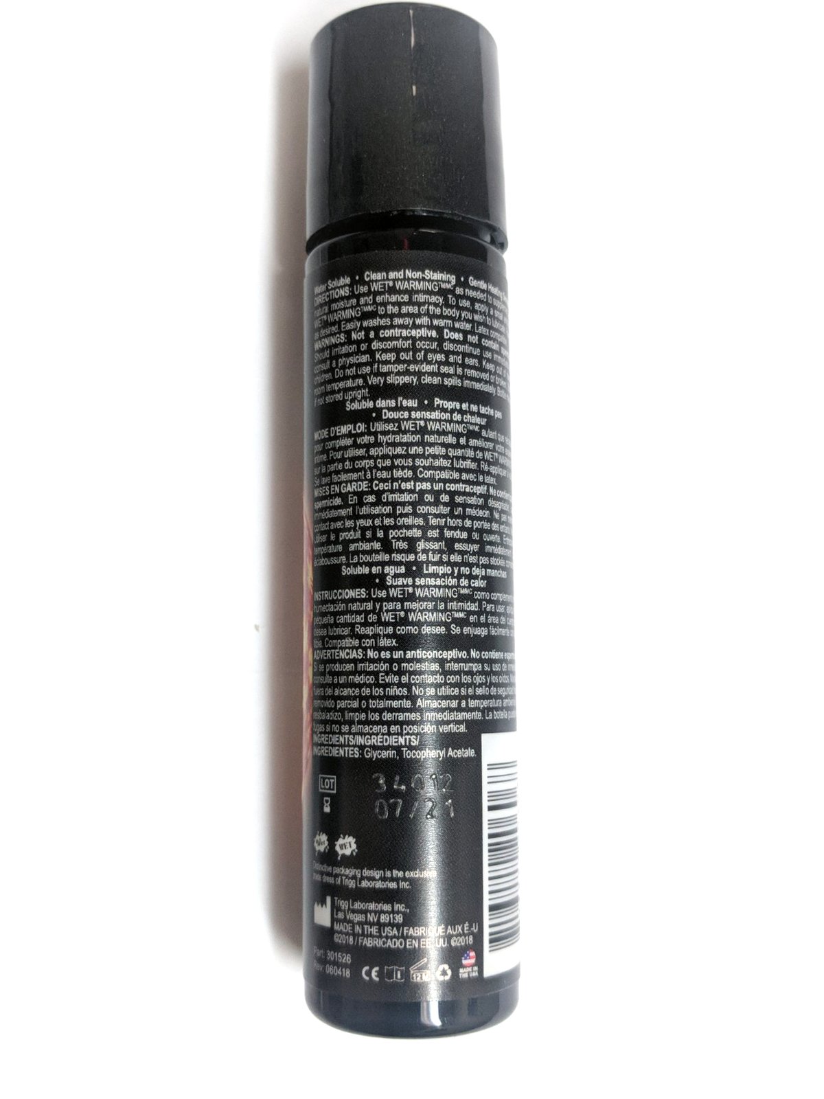Turn up the heat! Wet Warming gently heats on contact and warms with motion… blow on it, and it gets warmer. Silky smooth, long-lasting, and water-soluble, this personal lubricant is harmless if ingested, and latex friendly. Lick it and feel the heat between your sheets! Not recommended for those with sensitive skin.Now kosher!