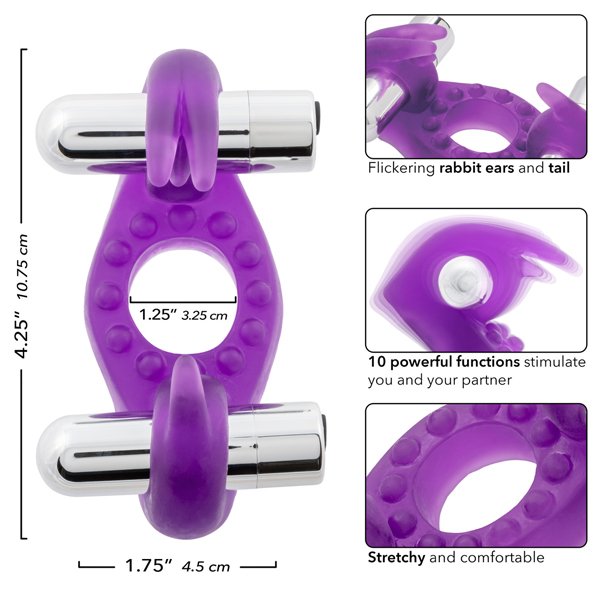 Total ecstasy with simultaneous orgasms with this soft, stretchy, comfortable enhancer with fluttering rabbit ears and teaser tail Rechargeable.