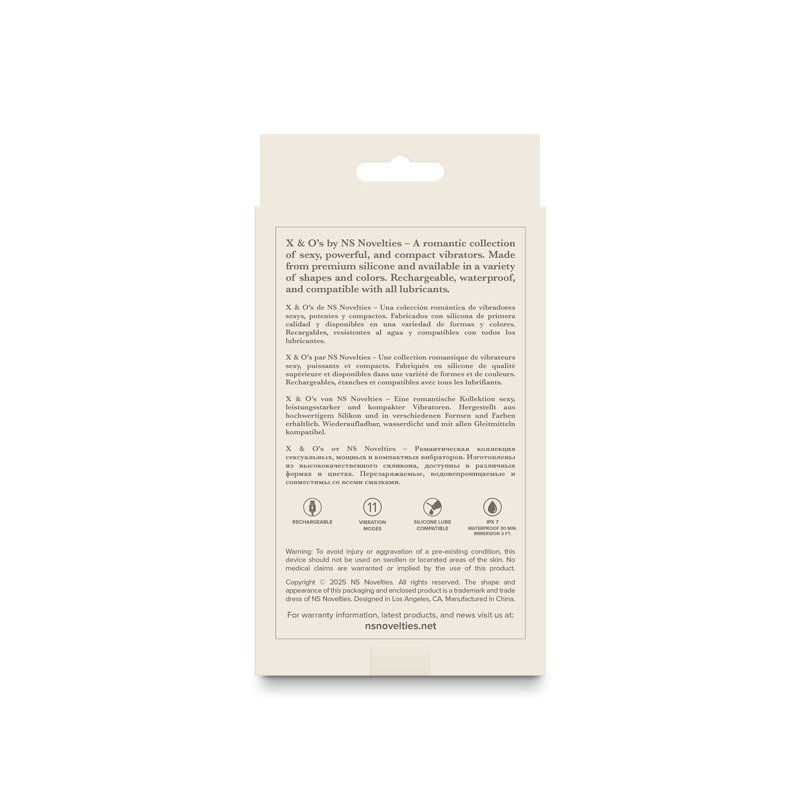 X & Os by NS Novelties A romantic collection of sexy, powerful, and compact vibrators. Made from premium silicone.
